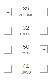 { volume: <number>, bass: <number>, mid: <number>, treble: <number> } -